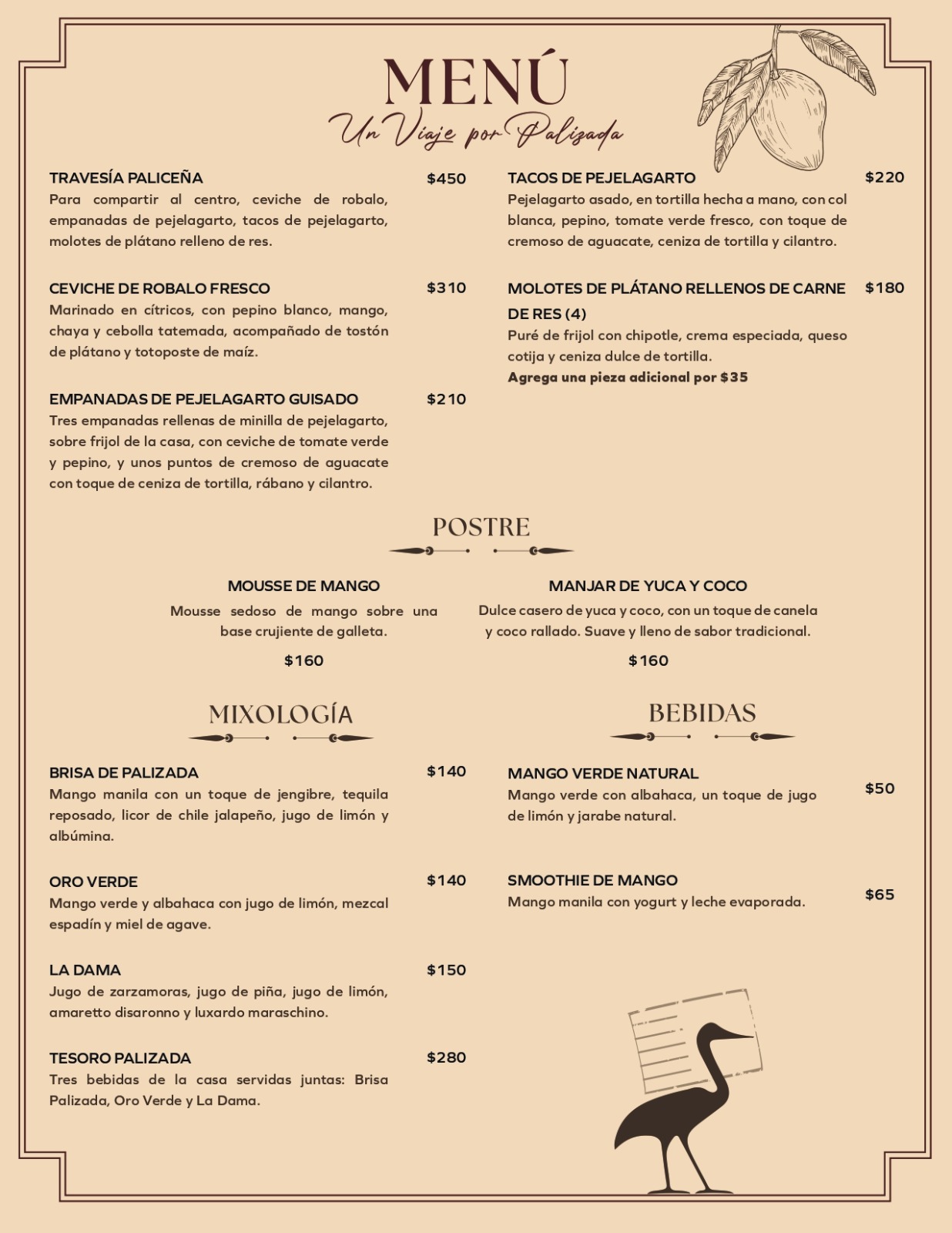A partir del 7 de febrero contaremos con un menú especial el cual contendrá platillos típicos de palizada y estará vigente hasta el 23 de Febrero, no te pierdas de este viaje por palizada.